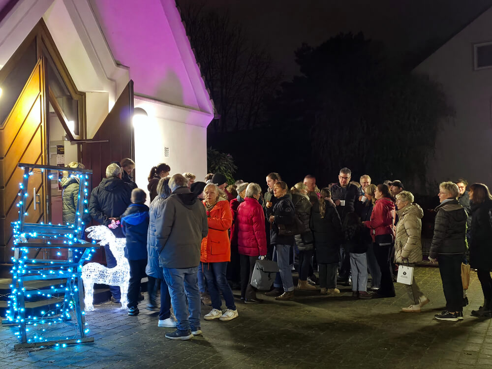 Nach dem Rudelsingen verweilten wir noch gemeinsam vor der Kirche, genossen Glühwein oder Punsch, lachten herzlich und unterhielten uns in geselliger Runde.
