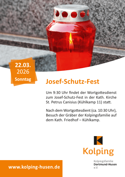 Um 9:30 Uhr findet der Wortgottesdienst zum Josef-Schutz-Fest in der Kath. Kirche St. Petrus Canisius (Kühlkamp 11) statt.